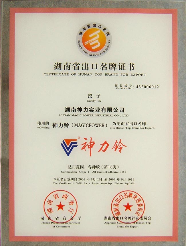 神力集團(tuán)喜獲湖南省出口名牌證書(shū)。